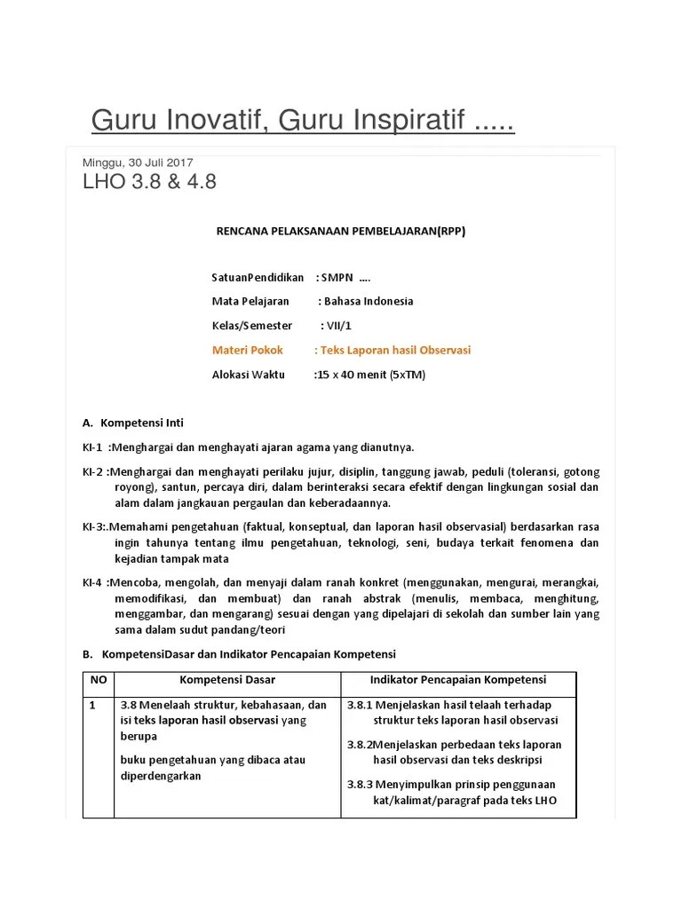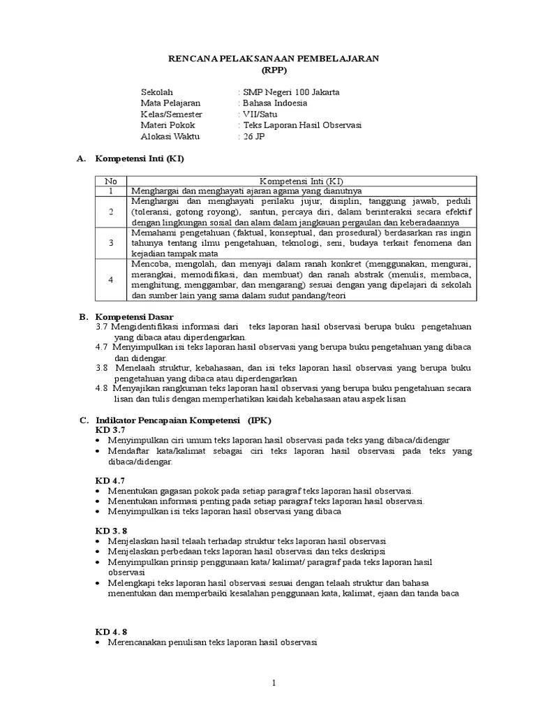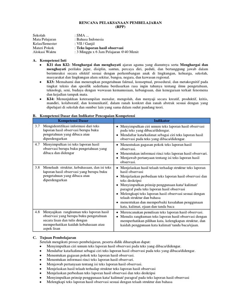 Rpp Teks Laporan Hasil Observasi Smp Kelas 7 : Rpp Kelas 7 Teks Observasi - Achmad taupik tata letak :